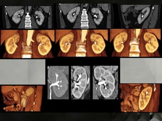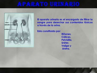 Este documento describe la urografía excretora, un estudio radiológico que visualiza las vías urinarias mediante la administración de contraste intravenoso. Explica que el aparato urinario incluye los riñones, cálices, pelvis renal, ureteres, vejiga y uretra. Luego detalla los pasos de la técnica, incluyendo la preparación del paciente, administración del contraste y toma de placas a diferentes tiempos para evaluar la morfología y función del tracto urinario.