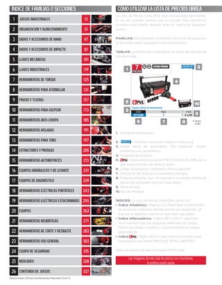 Este documento presenta una lista de precios para 2016 que incluye descripciones e imágenes de productos, códigos de productos, empaques, precios de lista y más. La lista de precios está organizada en 25 secciones de familias de productos e incluye índices alfabéticos y por código para facilitar la búsqueda.