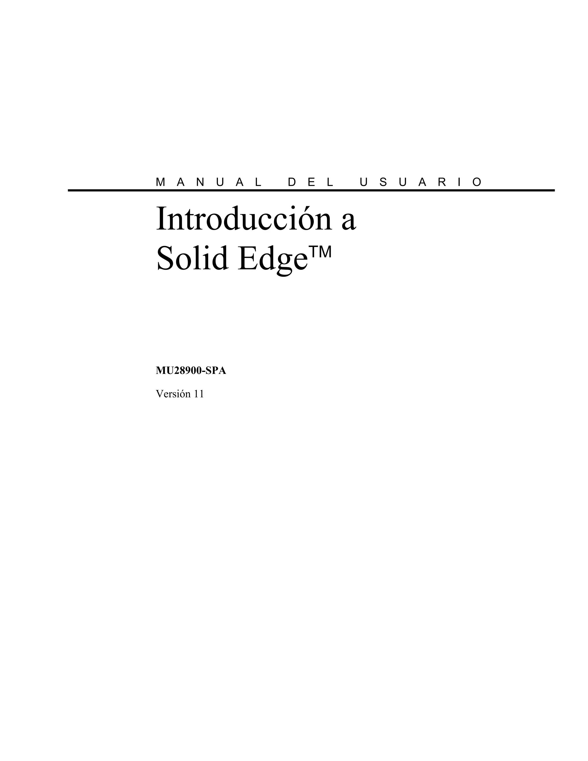 Este documento presenta el manual del usuario para Solid Edge, un software de diseño asistido por computadora (CAD). Explica cómo instalar y usar Solid Edge para modelado de piezas, modelado de piezas de chapa, y dibujo 2D. También incluye secciones sobre selección de elementos, interfaz de usuario, y requisitos del sistema.