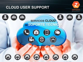 Este documento describe los servicios de soporte técnico en la nube ofrecidos por Zemsania. Zemsania ofrece una variedad de servicios de soporte técnico desde el nivel 1 hasta un servicio integral, utilizando plataformas en la nube y herramientas de comunicación como chat, videoconferencia y SMS. Los servicios se pueden personalizar y ofrecer de forma remota, cercana u offshore para satisfacer las necesidades específicas de cada cliente.