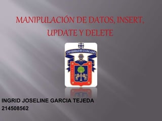 El documento presenta a Ingrid Joseline García Tejeda, estudiante de la Licenciatura en Tecnologías de la Información. Está relacionado con el curso de Sistemas de Bases de Datos II. Se menciona su número de matrícula y su asociación con el Centro Universitario de los Valles.