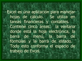 Este documento describe las herramientas de Excel para calcular medidas de dispersión. Explica que Excel se utiliza para tareas financieras y contables, y que la información se coloca en columnas y filas. Detalla que la opción fx permite realizar cálculos estadísticos y que los datos deben tabularse con las variables en las columnas y los sujetos en las filas. Además, explica cómo usar fx para buscar funciones estadísticas como la desviación estándar, varianza, mínimo y máximo para calcular el rango.