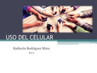 El documento aborda el uso adecuado del celular, destacando la importancia de priorizar la comunicación cara a cara y respetar las normas de uso en espacios públicos. Además, menciona ventajas como la portabilidad y la capacidad de conectar a personas globalmente, así como desventajas que incluyen la dependencia y la posibilidad de aislamiento. Se enfatiza la necesidad de ser respetuoso y responsable en el uso del celular para contribuir a una convivencia armoniosa.