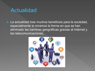 El documento discute los beneficios y desafíos del uso de teléfonos celulares en la sociedad moderna. Señala que aunque los celulares han eliminado barreras geográficas y permiten la comunicación en cualquier lugar, a veces su uso es inapropiado o molesto para los demás, como en reuniones sociales, la mesa o lugares públicos. También describe brevemente cómo funciona la tecnología celular a nivel técnico.