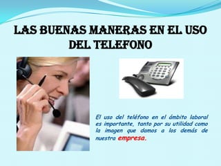 Este documento proporciona información sobre el teléfono, incluyendo su historia, etiqueta para su uso en el trabajo y en sociedad, y consejos para un uso adecuado. Explica que Antonio Meucci es considerado el verdadero inventor del teléfono y no Alexander Graham Bell. También describe posibles consecuencias del uso excesivo de teléfonos celulares como infertilidad, cataratas y tumores cerebrales.