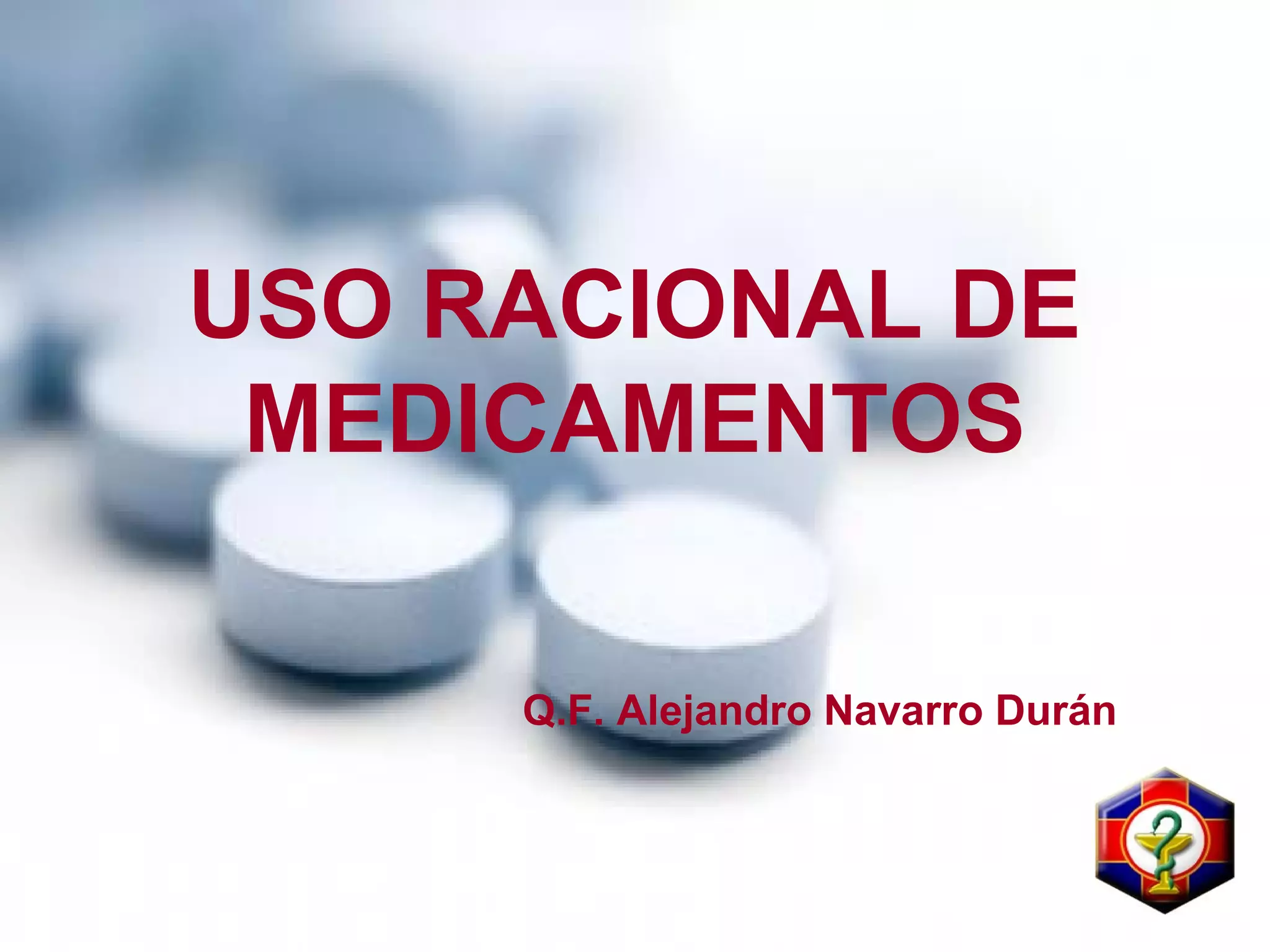 El documento habla sobre el uso racional de medicamentos. Explica que el uso racional significa obtener el mejor efecto con el menor número de fármacos durante el período más corto posible y a un costo razonable. Identifica seis tipos de problemas relacionados con medicamentos que afectan la salud de los pacientes y ofrece recomendaciones para que los pacientes usen los medicamentos de forma segura y efectiva.
