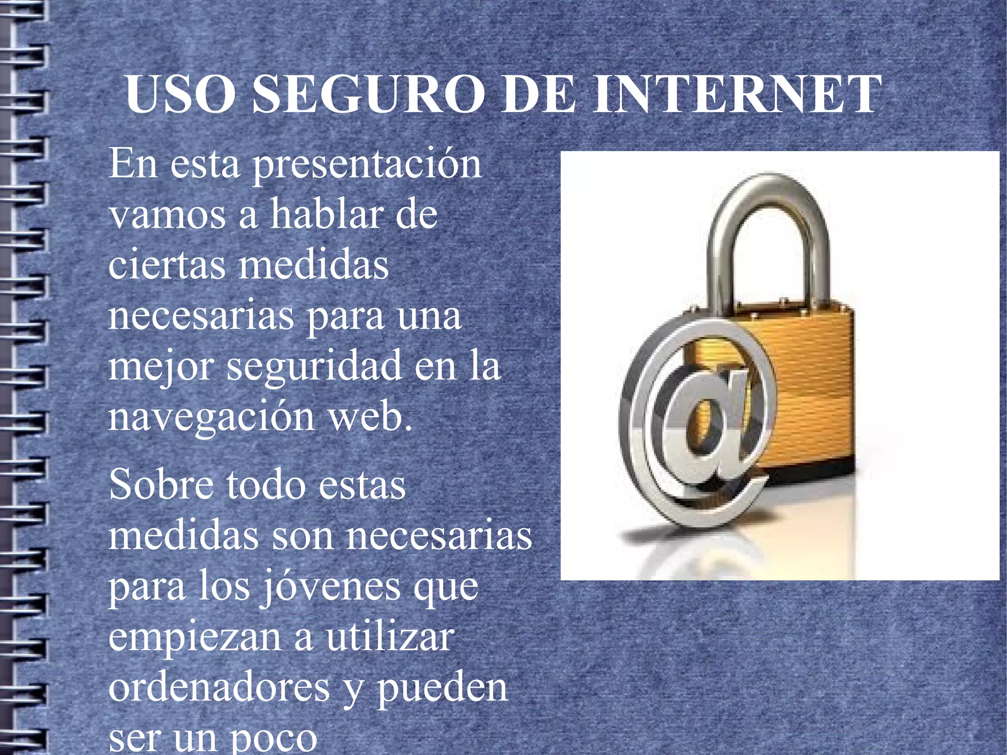 El documento detalla medidas de seguridad para el uso seguro de Internet, enfocándose en la protección necesaria para los jóvenes. Se sugiere que los padres establezcan reglas, controlen el uso del ordenador, y eduquen a sus hijos sobre los peligros en línea. Además, se ofrecen consejos para los jóvenes sobre cómo manejar sus interacciones y proteger su información personal en la red.