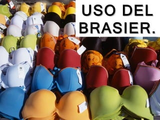 Este documento discute los posibles peligros de usar brasieres apretados por mucho tiempo y sugiere que esto puede estar relacionado con un mayor riesgo de cáncer de mama. Señala un estudio que encontró que las mujeres con cáncer de mama usaban brasieres más apretados y por más horas que las mujeres sin cáncer. Recomienda no usar brasieres apretados y preferiblemente dormir sin brasier, ya que esto puede mejorar la salud de los senos. Finalmente, pide informar a otras mujeres sobre los posibles peligros de usar bras