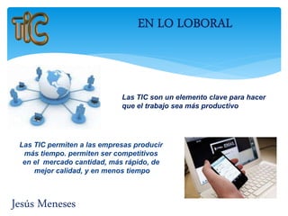 Las TIC permiten que el trabajo sea más productivo al permitir que las empresas produzcan más cantidad, más rápido, de mejor calidad y en menos tiempo. Las TIC también juegan un papel importante en el marketing y la publicidad de empresas y en la educación y el entretenimiento de las personas.
