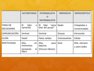Líder: Dirige, organiza, motiva, toma decisiones.