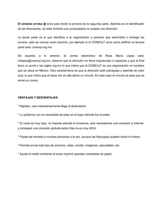 El documento describe las utilidades del correo electrónico y las redes sociales. Explica que el correo electrónico permite enviar mensajes de forma rápida y económica entre computadoras de cualquier parte del mundo. También describe populares redes sociales como Facebook, Twitter y servicios de correo como Hotmail y Gmail. Resalta las ventajas como la rapidez y bajo costo, pero también las desventajas como la necesidad de acceso a Internet y el spam.