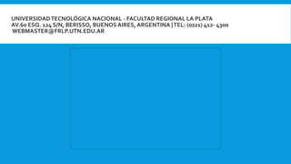 La Secretaría de Asuntos Estudiantiles de la Universidad Tecnológica Nacional Facultad Regional La Plata brinda asistencia social a estudiantes, participa en iniciativas de discapacidad, fomenta el deporte y el voluntariado. La UTN se distingue por priorizar la ingeniería y tener presencia federal en el país. Ofrece carreras de 5 años de Ingeniería Mecánica, Eléctrica, Química, Industrial, de Sistemas de Información y Civil.