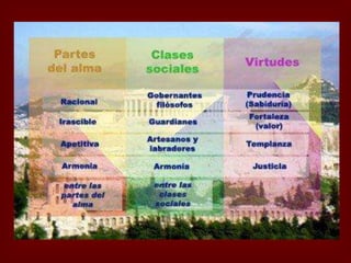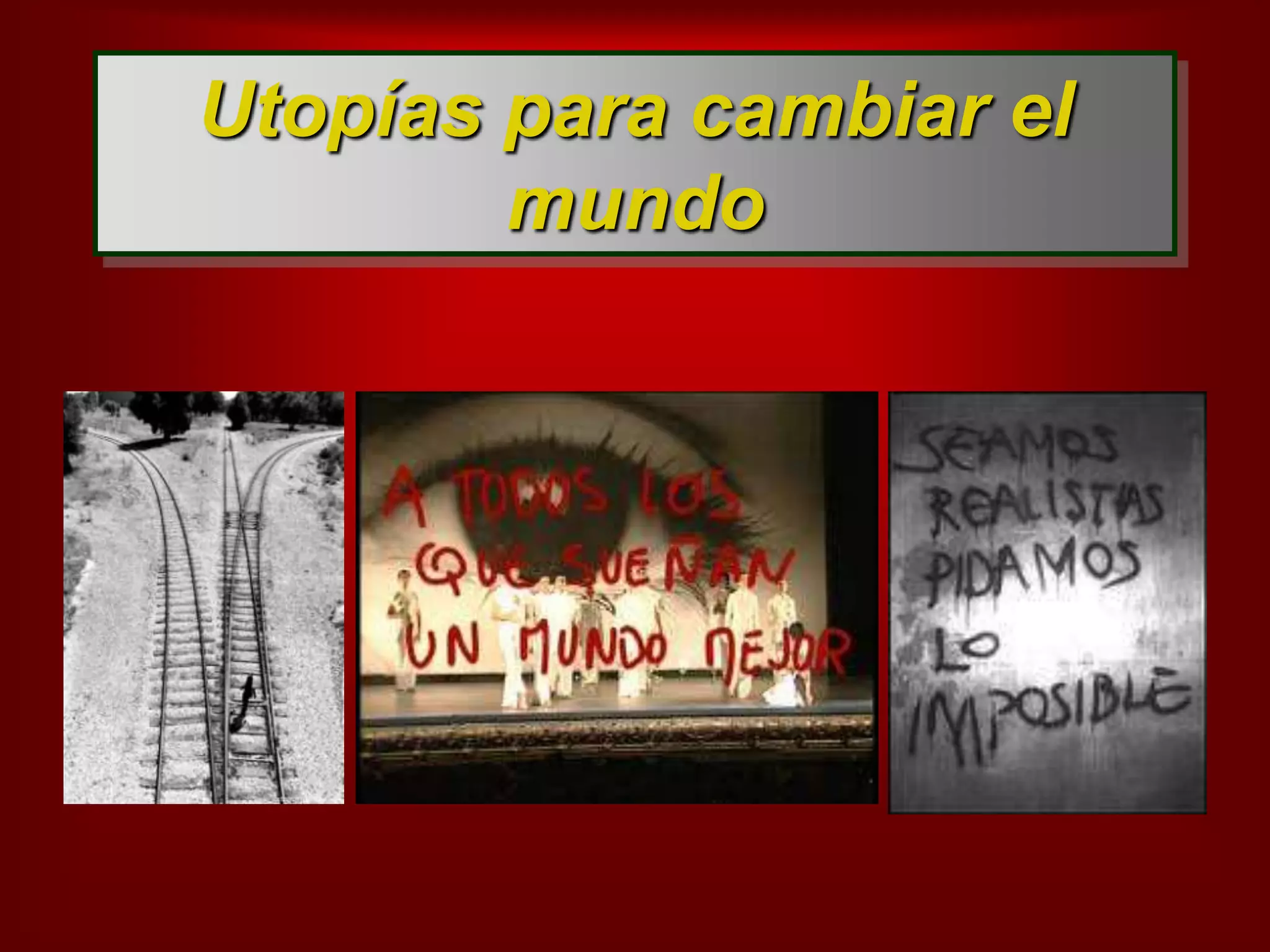 Este documento resume las ideas de utopía según Platón y Tomás Moro. Platón propuso una utopía ideal donde la sociedad estaría dividida en tres clases (trabajadores, guerreros y gobernantes) y cada uno desempeñaría el rol para el que estuviera más capacitado. Moro escribió la obra Utopía en el siglo XVI describiendo una república feliz con detalles sobre su economía, urbanismo y justicia. El documento también discute que aunque las utopías sean inalcanzables, su búsqueda permite