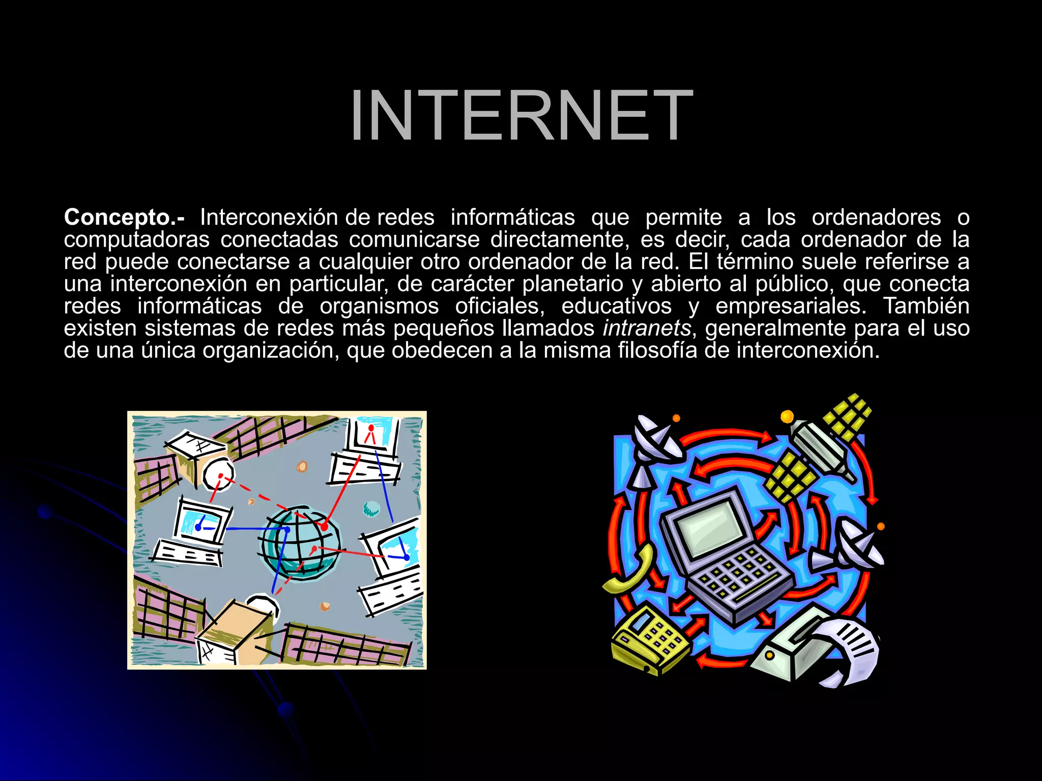 El documento proporciona información sobre Internet y las redes informáticas. Explica que Internet es la interconexión global de redes informáticas que permite a los ordenadores comunicarse, y que también existen redes más pequeñas llamadas intranets. Describe los principales servicios de Internet como consultas en bibliotecas, correo electrónico, compras en línea y más. Además, explica conceptos clave sobre redes informáticas como tipos de software, hardware, topologías y más.