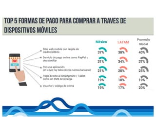 El documento presenta información sobre ecosistemas digitales y métricas digitales. Explica conceptos como la conversión en el ecosistema digital, analíticas digitales, inteligencia de negocio y mercado usando big data, modelos de atribución, e-commerce, aplicaciones móviles, y redes sociales y su papel en la conversión. También discute temas como embudos de conversión, atribución de ventas, y estrategias omnicanales.