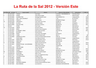 Este documento proporciona información sobre 290 barcos participantes en la Ruta de la Sal 2012, incluyendo su número, país, matrícula, nombre, patrón, marca y modelo del barco, abreviatura del club o puerto base y velocidad media por milla náutica. Los barcos participantes son de España, Alemania, Rusia, Luxemburgo, Irlanda y Países Bajos.