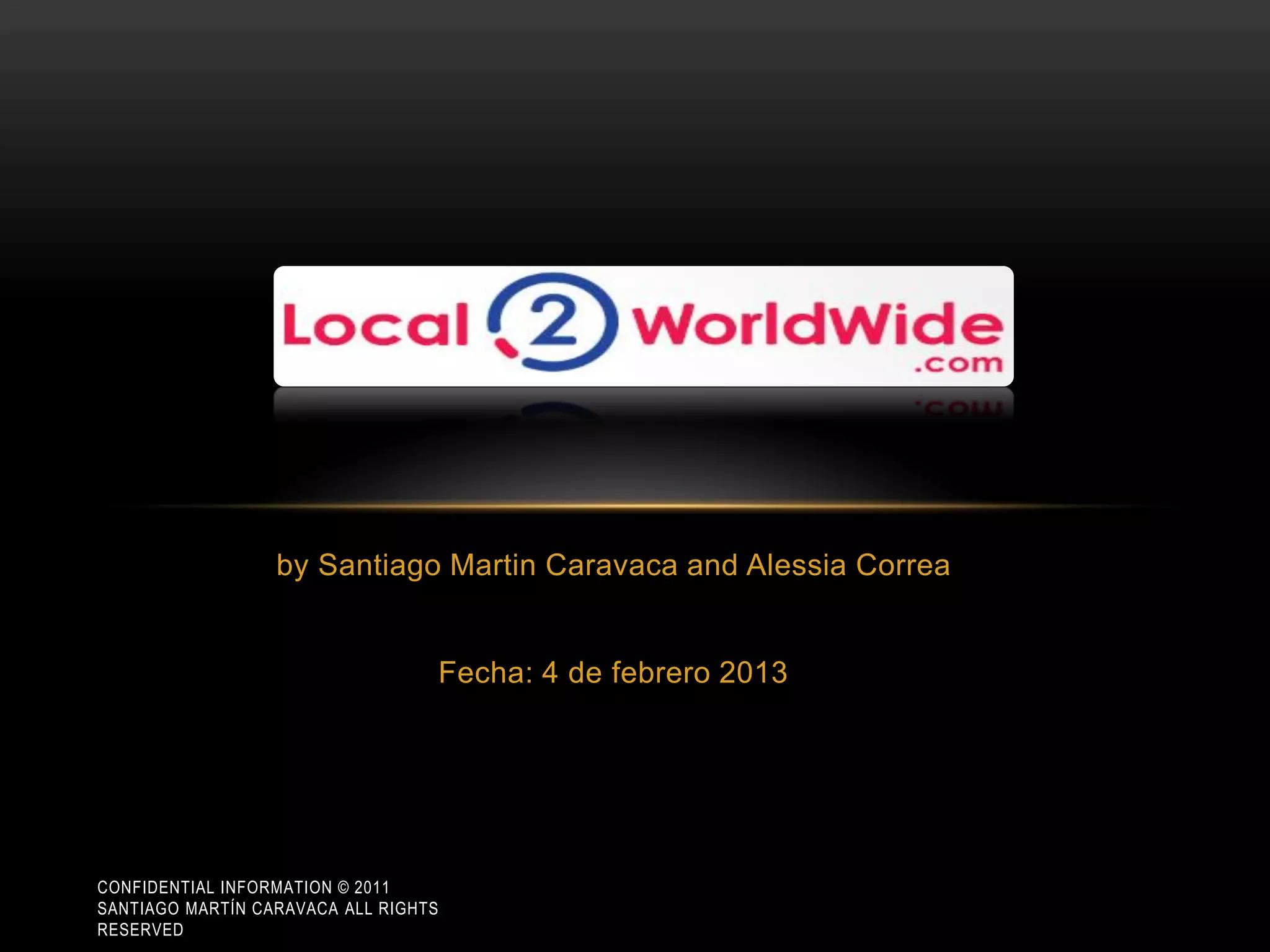 El documento presenta la filosofía de Local2Worldwide (l2w), que busca conectar realidades locales a nivel global. Se describen cinco pasos para involucrar a usuarios, empresas y administraciones en la creación y difusión de contenido cultural. La visión para 2016 es que 7 millones de personas comprendan interculturalmente a través de esta plataforma.