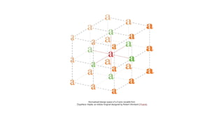 El documento trata sobre el uso de fuentes variables en WordPress, centrándose en herramientas y plugins disponibles. Ana Cirujano presenta diferentes ejes de personalización como peso, ancho y óptica, que permiten ajustar las tipografías. Además, se menciona un enlace al plugin Mowomo para implementar estas fuentes en el sitio web.