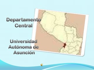 El departamento central de Paraguay cuenta con varias ciudades como capital Areguá. Sus principales actividades son la artesanía, agricultura, ganadería e industria. El departamento ofrece varios sitios turísticos notables como el Lago Ypacaraí, Rio Paraguay, y museos. El documento proporciona contactos para más información sobre el departamento central.