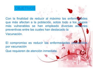 El documento detalla la importancia de la vacunación para reducir enfermedades prevenibles, enfocándose en la inmunidad, tipos de vacunas y enfermedades como tuberculosis, sarampión, rubéola y poliomielitis. Describe cada vacuna, su presentación, dosificación y contraindicación, así como los mecanismos de acción y efectos de las enfermedades asociadas. Se enfatiza la necesidad de la vacunación en la población, especialmente en los grupos vulnerables.