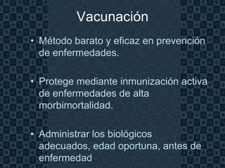 Este documento presenta un resumen de las principales vacunas y sus esquemas de aplicación. Explica que las vacunas son un método barato y eficaz para prevenir enfermedades mediante la inmunización activa. Se debe observar cuidadosamente las recomendaciones sobre edades, dosis, intervalos y vías de administración para lograr una inmunización eficaz. El documento concluye presentando de forma resumida los esquemas básicos de las principales vacunas como la hepatitis B, rotavirus, influenza, varicela, neumococo,