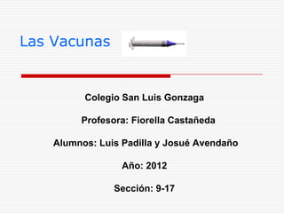 Este documento resume los conceptos clave de las vacunas. Explica que las vacunas contienen antígenos que desencadenan la producción de anticuerpos para brindar inmunidad contra ciertas enfermedades. Se clasifican en vacunas vivas atenuadas y vacunas muertas o inactivadas. Los métodos de obtención incluyen vacunas a partir de formas no peligrosas de microorganismos. Las vacunas sirven para prevenir o curar enfermedades y mejorar la salud.