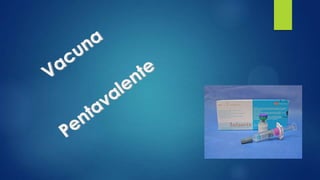 La vacuna pentavalente protege contra difteria, tos ferina, tétanos, hepatitis B e infecciones por Haemophilus influenzae tipo B. Induce anticuerpos en 2 semanas y ofrece inmunidad del 100% contra difteria y tétanos y del 95% o más contra las otras enfermedades. Se aplica en 3 dosis a los 2, 4 y 6 meses de edad.