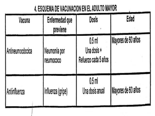 El documento proporciona información sobre diferentes vacunas, incluyendo qué son, sus componentes, tipos (atenuadas, inactivadas, recombinantes), producción, y detalles sobre vacunas específicas como BCG, Sabin, DPT, triple viral y Td. También describe la cartilla de vacunación, que registra las vacunas aplicadas a cada individuo.