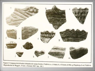 Este trabajo de historia precolombina se enfoca en la cultura Valdivia, una cultura antigua localizada en Ecuador que data desde 3500 a.C. El documento describe algunos artefactos clave de la cultura Valdivia como ollas de barro, vasijas decoradas, y morteros. También compara la cultura Valdivia con la cultura Jomon de Japón, otra cultura antigua.