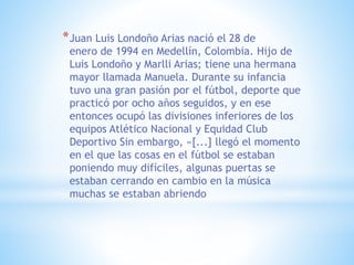 Maluma es un cantante colombiano que inició su carrera musical en Medellín a muy temprana edad, logrando éxito con su sencillo debut "Farandulera". Firmó con Sony Music y lanzó su primer álbum "Magia" en 2012, con el cual alcanzó reconocimiento a nivel latinoamericano. A lo largo de su carrera ha lanzado varios sencillos exitosos y ha sido nominado a importantes premios musicales internacionales.