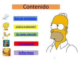El documento habla sobre un grupo llamado "Locos en Acción" que ofrece servicios de entretenimiento para eventos como cumpleaños. El grupo incluye payasos, magos y artistas que realizan actividades como concursos, juegos mágicos, rifas y shows con títeres para brindar diversión y risas a los asistentes. El documento también incluye un presupuesto estimado para cada actividad ofrecida por el grupo.