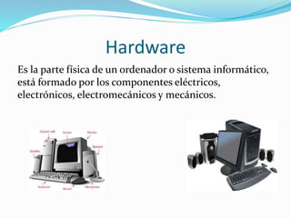 Este documento describe los componentes fundamentales de una computadora, incluyendo el hardware físico, software, dispositivos de entrada y salida, memoria, procesador y tarjeta de video. También incluye una sección sobre la computadora ideal del autor con especificaciones como una motherboard y procesador Intel, 8GB de RAM, un disco duro de 500GB y una tarjeta de video NVIDIA de 1GB.