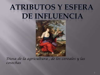 Ceres era la diosa romana de la agricultura, los cereales y las cosechas. Enseñó a los hombres el arte de cultivar la tierra y elaborar pan. Era hija de Saturno y Ops, hermana de Júpiter y Juno, y madre de Proserpina. También era la patrona de Sicilia.