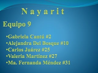 Nayarit fue admitido como estado de México en 1917. Originalmente formaba parte del territorio de Jalisco. Tuvo varios cambios administrativos como departamento de Tepic y distrito militar de Nayarit. Actualmente tiene una población de casi un millón de habitantes y su capital y ciudad más grande es Tepic. El estado se divide en 20 municipios y su economía se basa principalmente en el turismo, especialmente en la costa conocida como Riviera Nayarit.