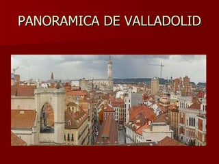 Este documento proporciona una panorámica general de la ciudad de Valladolid, España. Presenta información sobre la geografía, origen del nombre, monumentos principales, museos, Semana Santa, fiestas populares, zonas para salir de noche, castillos de la provincia, gastronomía local y conclusiones sobre los principales puntos de interés de la ciudad como la Plaza Mayor y el Campo Grande. Adjunta un video de una procesión de Semana Santa.
