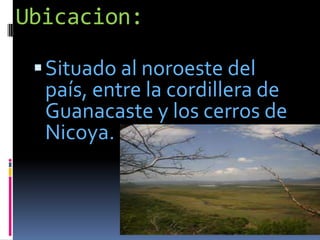 El Valle de Tempisque se encuentra en el noroeste de Costa Rica entre la cordillera de Guanacaste y los cerros de Nicoya. Es una gran planicie fértil a pocos metros sobre el nivel del mar donde se cultivan arroz, sorgo, algodón, papaya, sandía y aguacates, y se cría ganado. El valle sufre de carencia de agua durante la estación seca, por lo que el proyecto de riego Arenal-Tempisque provee agua a los agricultores y ganaderos.