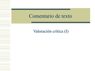 Este documento proporciona instrucciones sobre cómo realizar una valoración crítica de un texto. Explica que la valoración crítica implica relacionar el texto con los conocimientos y opiniones propias, y evaluar el tema y la argumentación del texto. Además, incluye ejemplos de valoraciones críticas de dos columnas periodísticas.