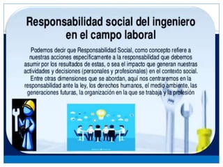 Este documento discute la responsabilidad ética de los profesionales de ingeniería civil. Explora los diferentes tipos de responsabilidad, incluidas las responsabilidades morales y profesionales. También examina los valores morales subyacentes y lo que hace que los valores sean válidos o legítimos para guiar la conducta responsable de un ingeniero.