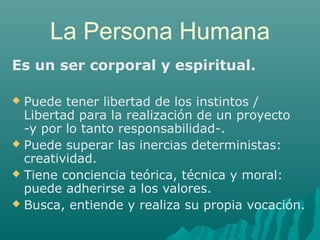 Este documento describe los cuatro valores culturales fundamentales: utilidad, belleza, verdad y bien. Explica que los valores se encuentran inherentes a los objetos y seres y que pueden ser conocidos a través de la relación con ellos. Define cada valor y ofrece ejemplos de los aspectos culturales que cubren, como las artes, ciencias, moralidad y organización social. Además, establece un orden jerárquico entre los valores donde la utilidad y belleza se subordinan a la verdad y el bien.