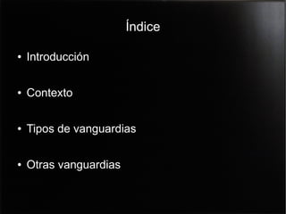 Las vanguardias artísticas surgieron a principios del siglo XX como una reacción contra el arte académico. Los principales movimientos vanguardistas fueron el cubismo, el futurismo, el surrealismo, el dadaísmo y el expresionismo alemán, cada uno con sus propias características en literatura, pintura y otras artes. Otras vanguardias incluyeron el impresionismo, el ultraísmo y el fauvismo.