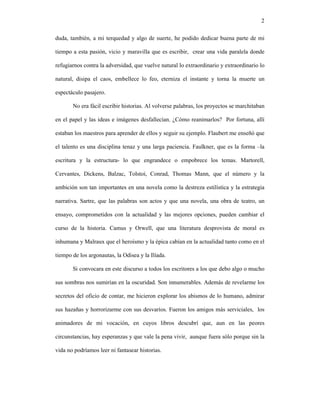 1) Mario Vargas Llosa habla sobre la importancia de la lectura y la ficción en su vida desde que aprendió a leer a los 5 años. 2) La lectura le permitió viajar a otros mundos a través de las historias y desarrolló su pasión por escribir continuando las historias. 3) A lo largo de su vida, se ha dedicado a escribir gracias al apoyo de su familia y maestros literarios que le enseñaron sobre la disciplina de la escritura.