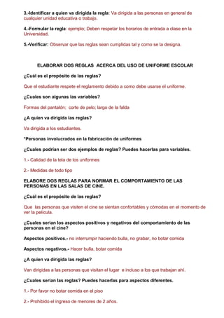 Este documento presenta las lecciones de un curso sobre el desarrollo de habilidades del pensamiento. La lección 1 cubre procesos como la expansión y contracción de ideas, considerar variables, y formular reglas. La lección 2 explora considerar consecuencias, alternativas y objetivos. La lección 3 cubre puntos de vista y considerar diferentes perspectivas.