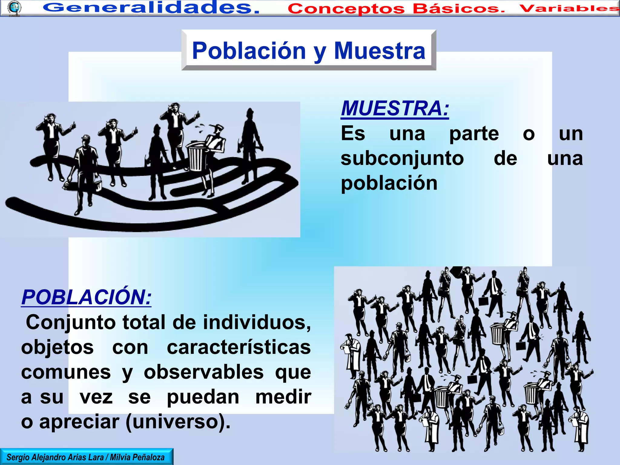 Este documento define conceptos clave para la investigación como población, muestra, variable, dato, parámetro, estadístico y escalas de medición. Explica que una población es el conjunto total de individuos con características en común y una muestra es una parte de la población. Define variables cualitativas y cuantitativas y las escalas nominal, ordinal, de intervalo y razón. Además, describe la relación entre variables independientes, intervinientes y dependientes en un estudio.