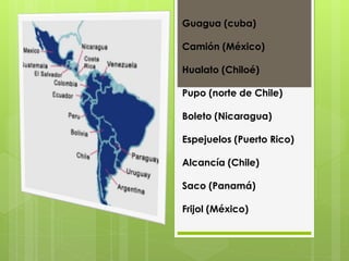 Este documento describe cuatro variables lingüísticas (diatópica, diastrática, diafásica y diacrónica) que influyen en las diferentes formas de hablar una misma lengua. Explica que la lengua no es homogénea y está determinada por factores como el lugar, el estrato social, el estilo y el tiempo. Ilustra estas variaciones con ejemplos de palabras y expresiones usadas de manera distinta en diferentes países y regiones de América.