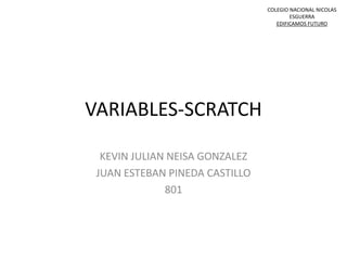 Este documento describe variables y objetos en Scratch. Explica que las variables permiten almacenar números o cadenas en un programa y pueden ser globales u objetos específicos. También describe cómo crear disfraces y objetos en Scratch, así como declarar variables para almacenar y mostrar valores.