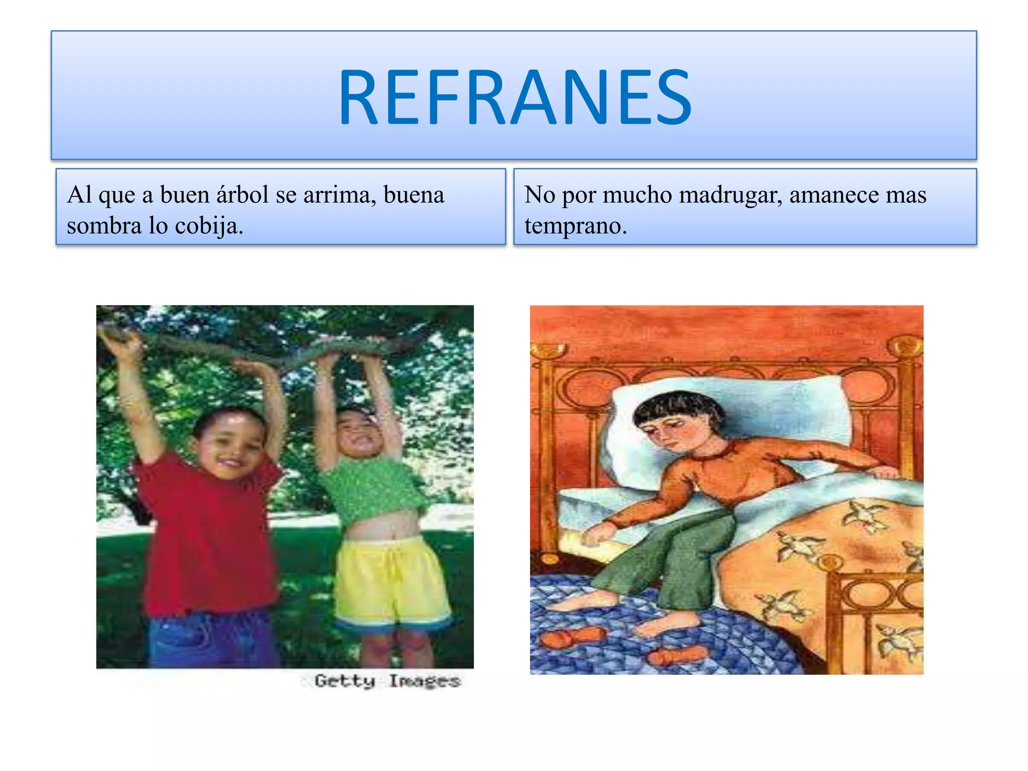 El documento contiene varios refranes, trabalenguas, poemas y frases sobre la importancia de la educación de los niños. Incluye refranes como "Al que a buen árbol se arrima, buena sombra lo cobija" y trabalenguas como "Yo lo coloco y ella lo quita". También presenta un poema sobre la luna y el sol y una frase que dice que imaginar la vida sin los niños es como no poder respirar. Al final identifica a los investigadores y diseñadores del documento.