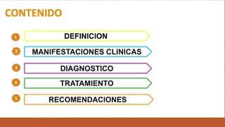 El documento resume la poliangeitis microscópica (PM), una enfermedad autoinmune caracterizada por una vasculitis sistémica de pequeños vasos. La PM causa manifestaciones clínicas como fiebre, astenia y afectación renal y pulmonar. El diagnóstico se basa en hallazgos de imagen y biopsia renal. El tratamiento consiste en corticoesteroides e inmunosupresores como ciclofosfamida para la inducción de la remisión, seguido de azatioprina u otros fármacos para el mantenimiento. Se