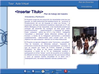 Este documento describe un proyecto interdisciplinario implementado en el 2o año medio de un liceo chileno. El proyecto aborda el tema de la "sexualidad y afectividad" desde distintas perspectivas como la biología, las artes, la historia y la tecnología. Los estudiantes indagan sobre estos temas y presentan productos digitales como powerpoints, boletines y páginas web. El proyecto busca fortalecer el lenguaje y abordar inquietudes propias de la edad a través de