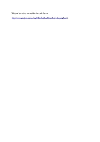 Este video muestra cómo miles de hormigas trabajan juntas para transportar objetos mucho más grandes que ellas mismas. A pesar de su pequeño tamaño individual, las hormigas demuestran una fuerza colectiva impresionante al unirse para llevar piezas de comida que son cientos de veces más grandes que una sola hormiga. El video ilustra cómo la cooperación y el trabajo en equipo pueden lograr grandes cosas, incluso entre los más pequeños de la naturaleza.