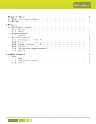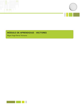 Este documento presenta un módulo de aprendizaje sobre vectores. Introduce conceptos clave como magnitudes físicas, coordenadas rectangulares y polares, y transformaciones entre sistemas de coordenadas. Explica cómo representar vectores en coordenadas cartesianas usando pares ordenados o vectores unitarios, y cómo calcular las coordenadas polares de un vector a partir de sus componentes rectangulares usando trigonometría. También cubre sumas y multiplicaciones de vectores.